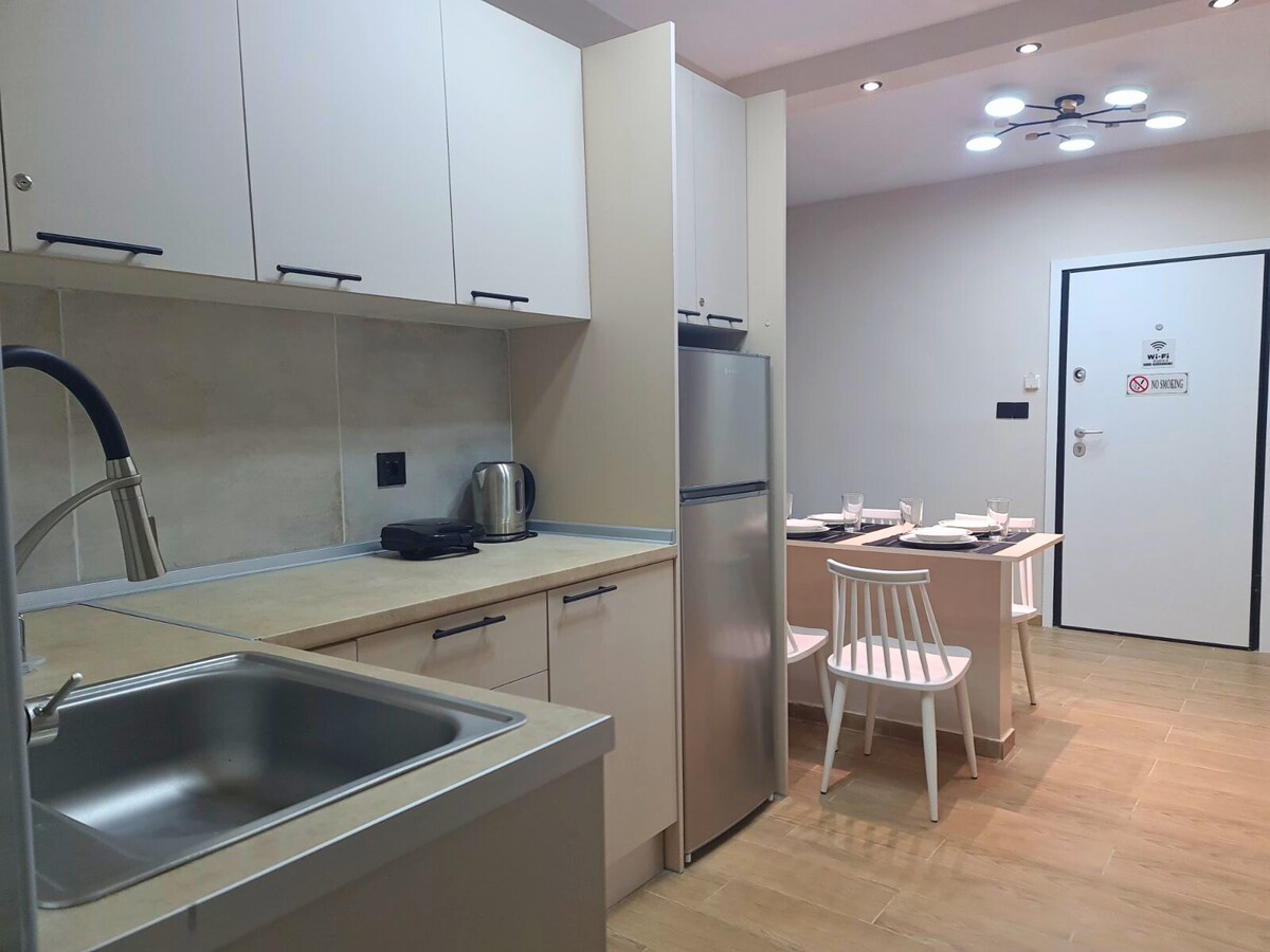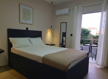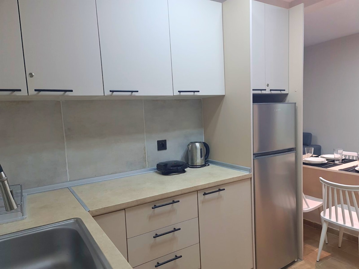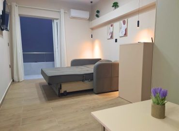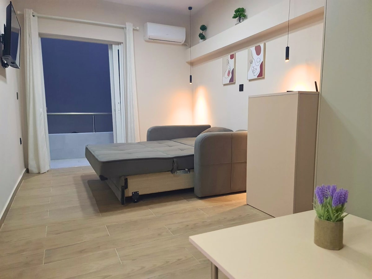 Rhódia & Sun by Booking Kottas is a stylish 52m² apartment in Rhodes, perfect for up to 4 guests. It offers a cozy bedroom with a double bed and a comfortable sofa bed in the living room, both equipped with TV and A/C. The fully equipped kitchen includes an oven, espresso coffee maker, and a dining area. Located on the second floor with elevator access, 150m from Ixia Beach. Modern bathroom, free Wi-Fi, and street parking. An infant child can be accommodated in a baby cot with an extra charge.